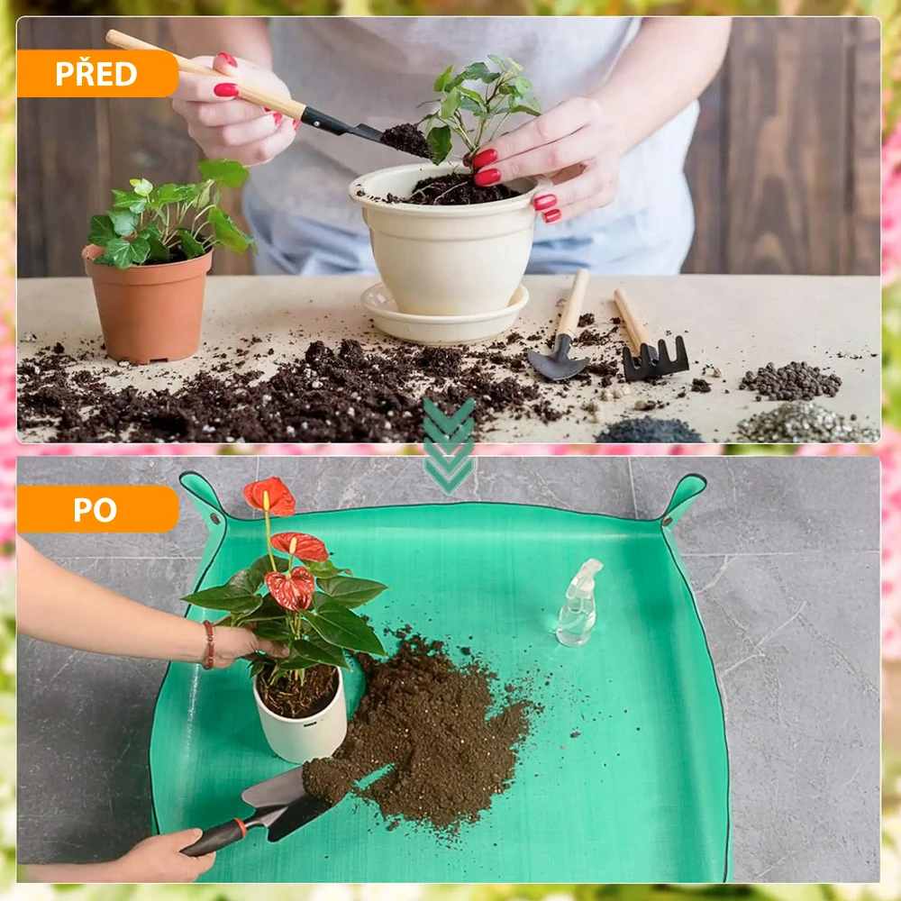 Přeměňte přesazování rostlin v čistou a příjemnou činnost s naší praktickou podložkou. Díky zvýšeným okrajům, které vytvoříte pomocí zapínacích cvočků, zůstane veškerý substrát a nečistoty přesně tam, kde mají být – na podložce.