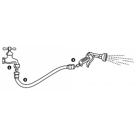 Obsahuje 15m 1/2" hadici, adaptér, rychlospojku, stop - rychlospojku a postřikovací hubici.