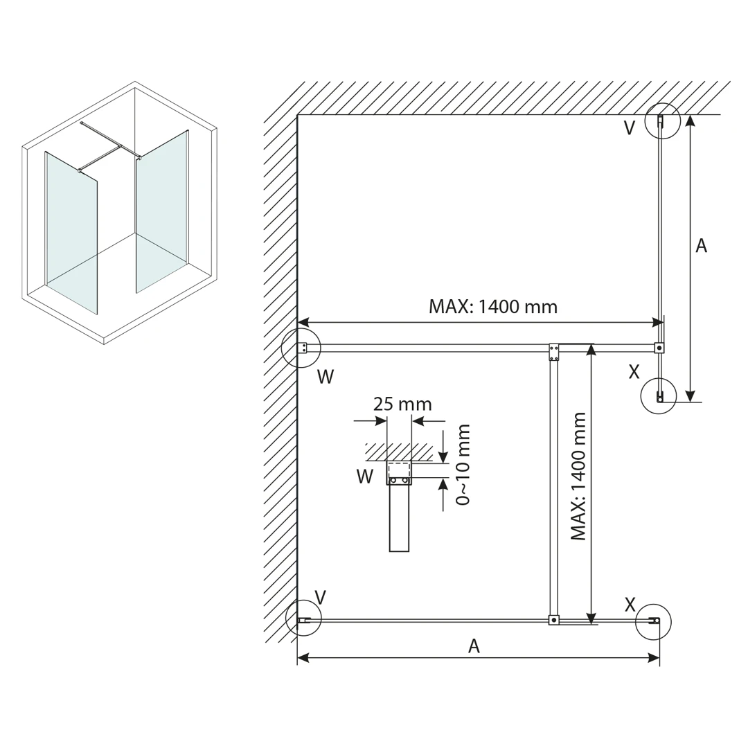 Balení obsahuje pouze sklo, stěnový profil a vzpěru je třeba objednat samostatně.