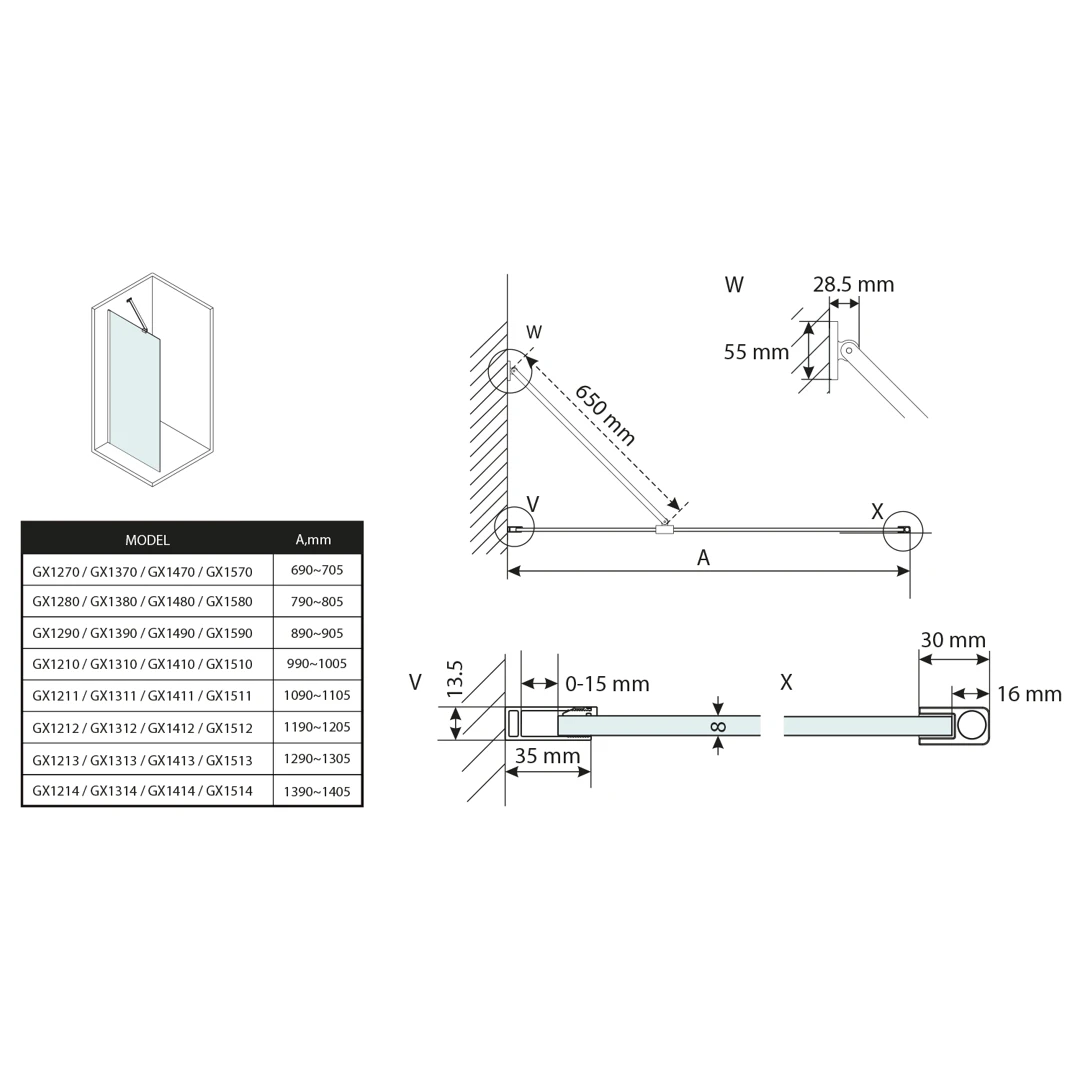 | Tloušťka skla | 8 mm |