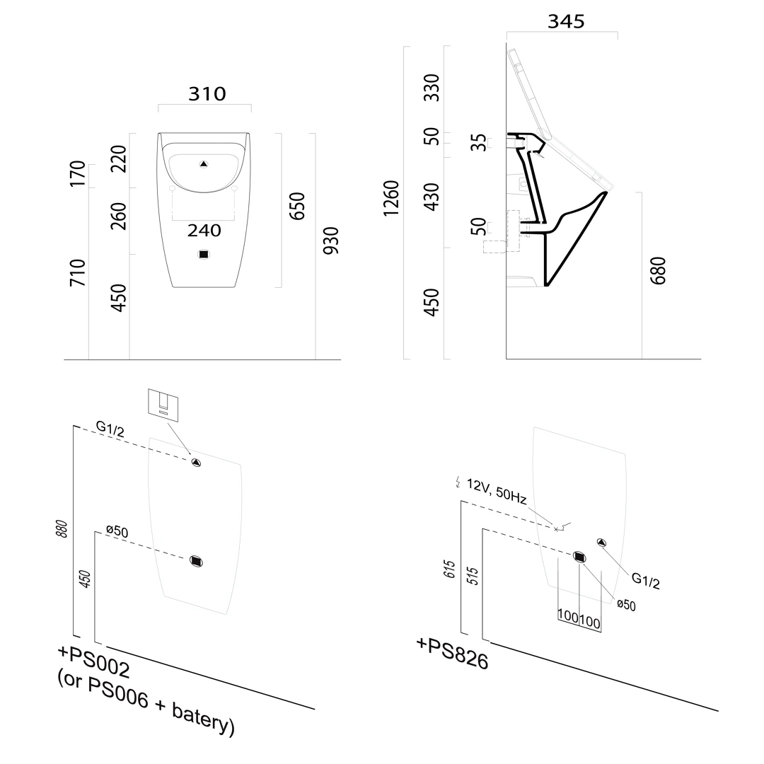 | Výbava | Možnost integrovaného splachovače, Urinál s poklopem |