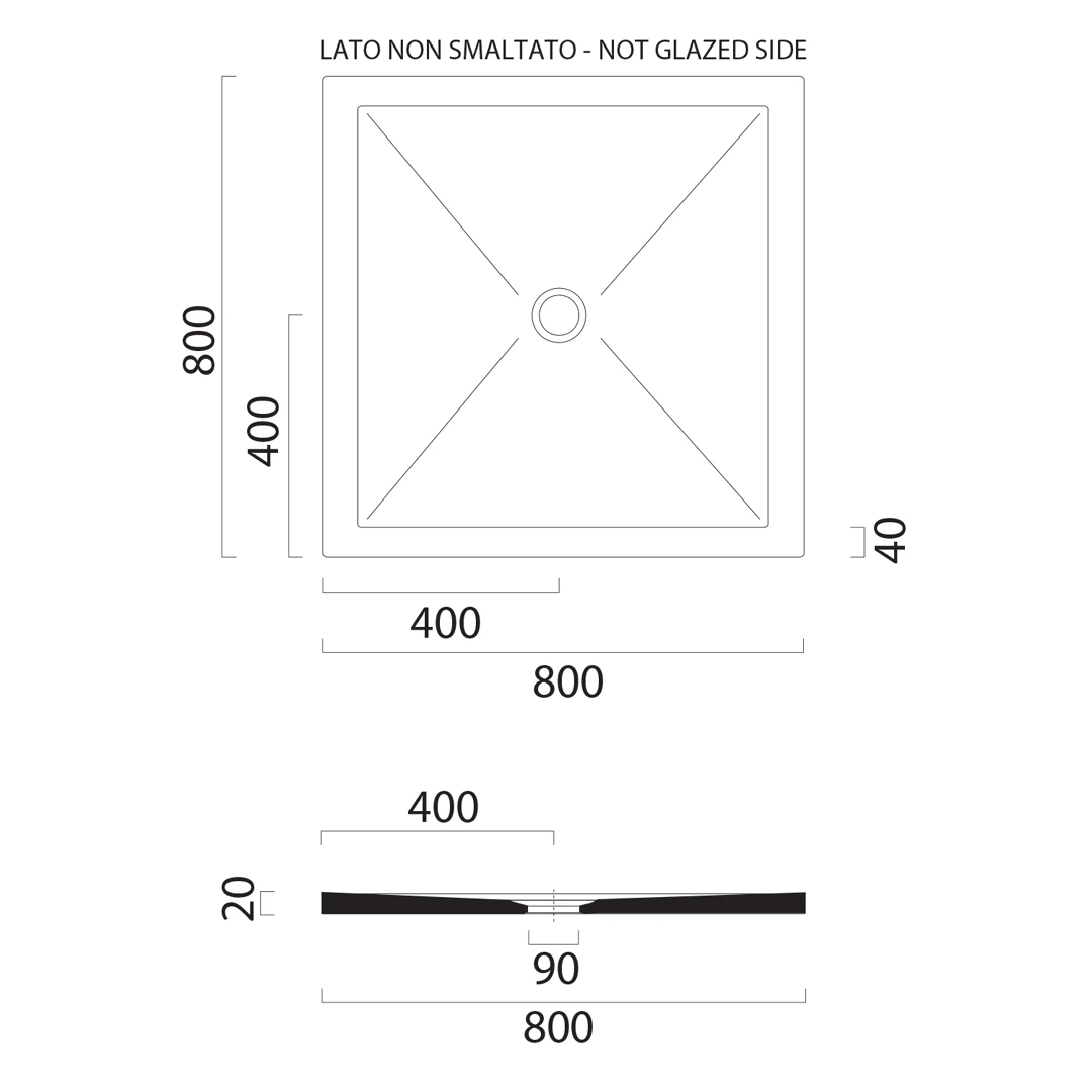 Boky vaniček, které jsou neglazované (určené k zazdění do zdi, či pod obklad), jsou na technickém výkresu označeny "not glazed side".