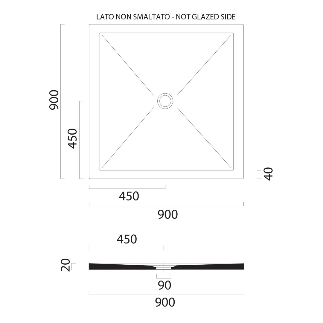 Boky vaniček, které jsou neglazované (určené k zazdění do zdi, či pod obklad), jsou na technickém výkresu označeny "not glazed side".