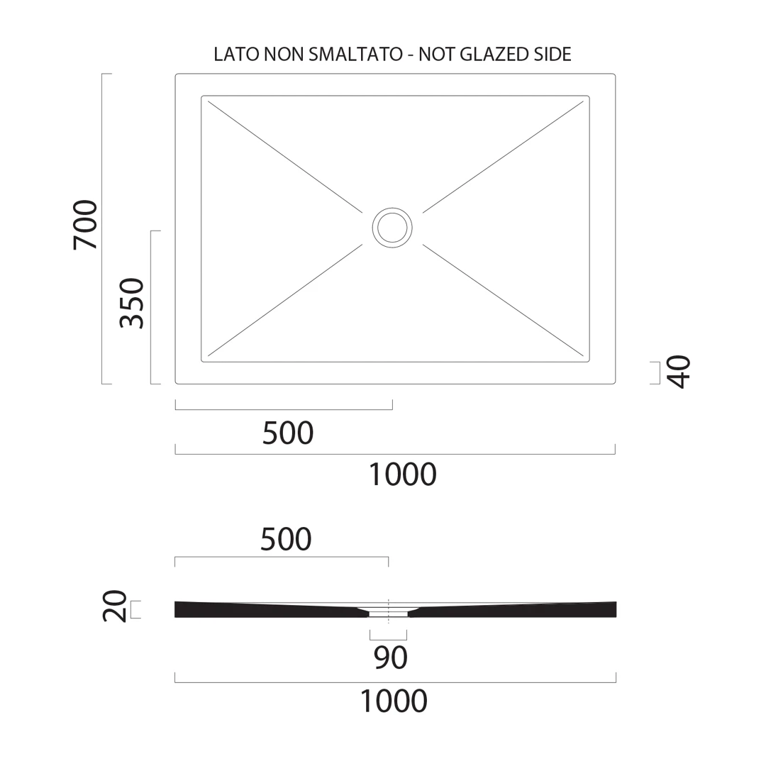 Boky vaniček, které jsou neglazované (určené k zazdění do zdi, či pod obklad), jsou na technickém výkresu označeny "not glazed side".