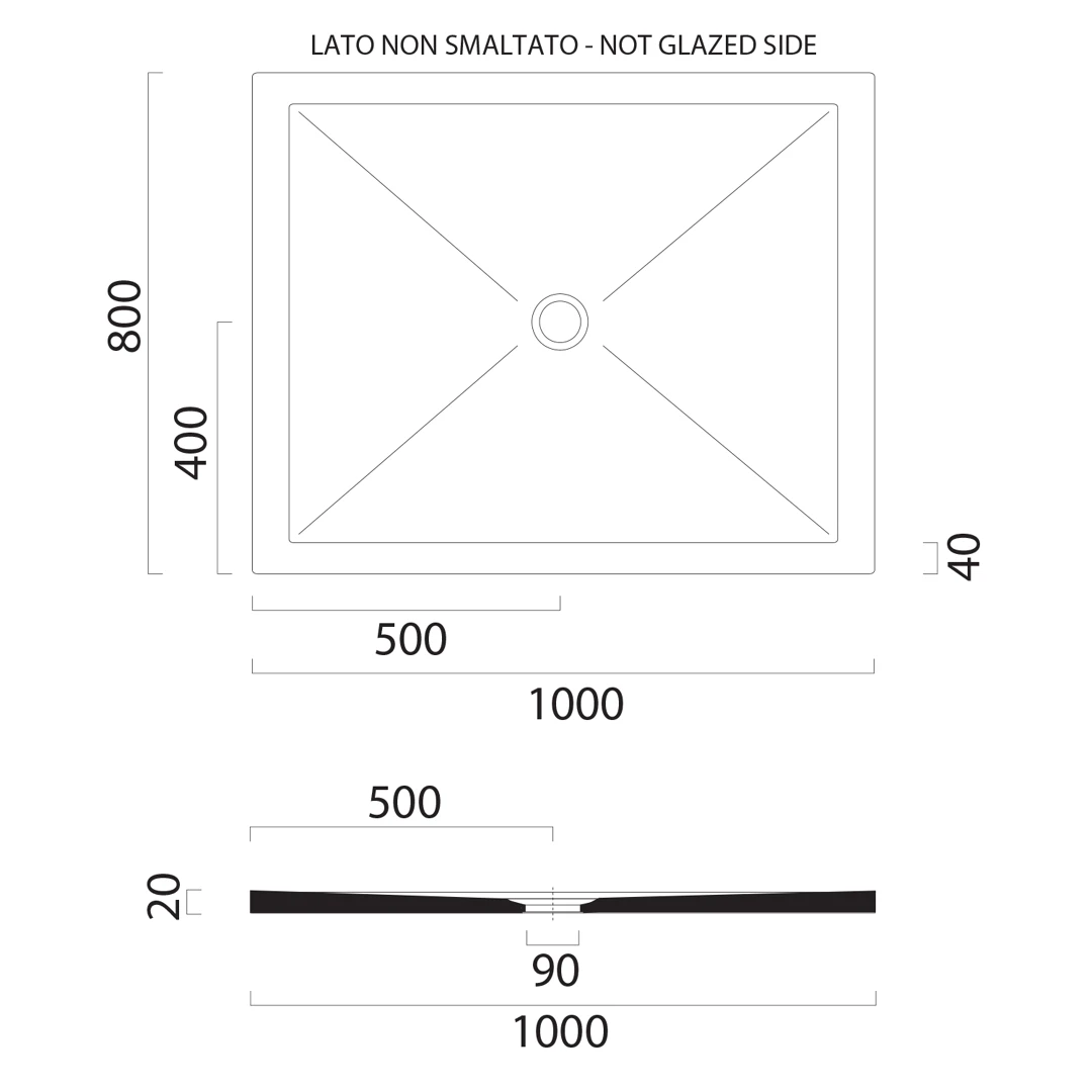 Boky vaniček, které jsou neglazované (určené k zazdění do zdi, či pod obklad), jsou na technickém výkresu označeny "not glazed side".
