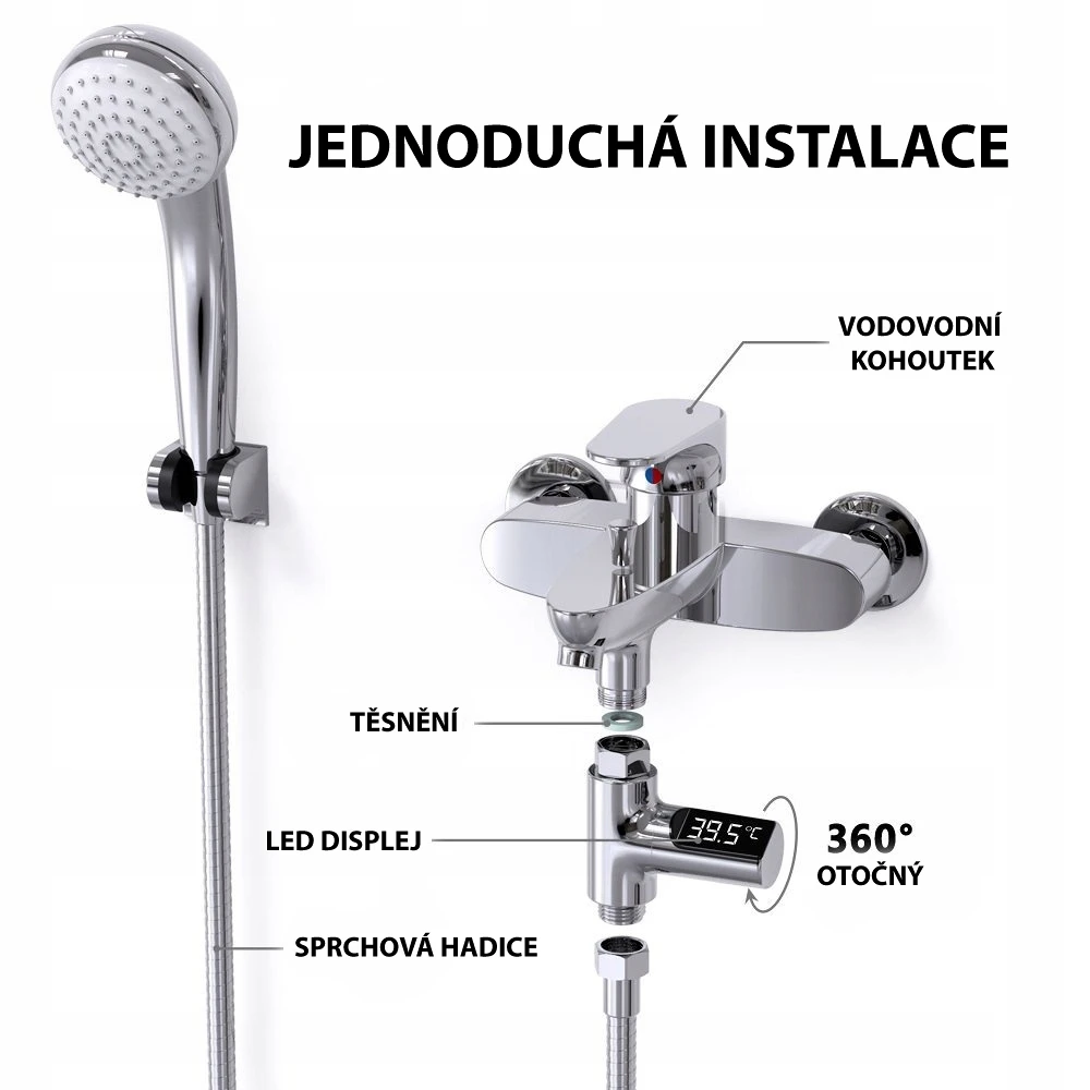 Průtokový teploměr je vhodný k regulaci teploty vody ve sprše, vaně nebo u umyvadla. Digitální průtokový teploměr Vám usnadní kontrolu teploty při sprchování mininek, dětí a seniorů.