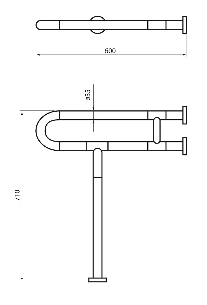 Madlo ve tvaru U s opěrnou nohou je ideální pomocník pro starší osoby nebo pro osoby s omezenou pohyblivostí. Madlo výrazně usnadní použití toalety, bidetu apod.