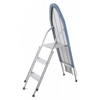 Žehlicí prkno a domácí schůdky v bytě často překážejí, přesto se však bez nich neobejdeme. Multifunkční žehlící prkno během chvilky přeměníte na praktické schůdky do domácnosti. Žehlicí prkno a schůdky 2v1 jsou ideální do menších domácností s omezeným prostorem. Stabilní kovová konstrukce zajišťuje pohodlné žehlení. Potah je ze 100% bavlny. Žehlicí prkno má perforovaný podklad - pára prochází skrz prkno a zvyšuje se tak efekt žehlení (vhodné i pro žehličky s parním generátorem).