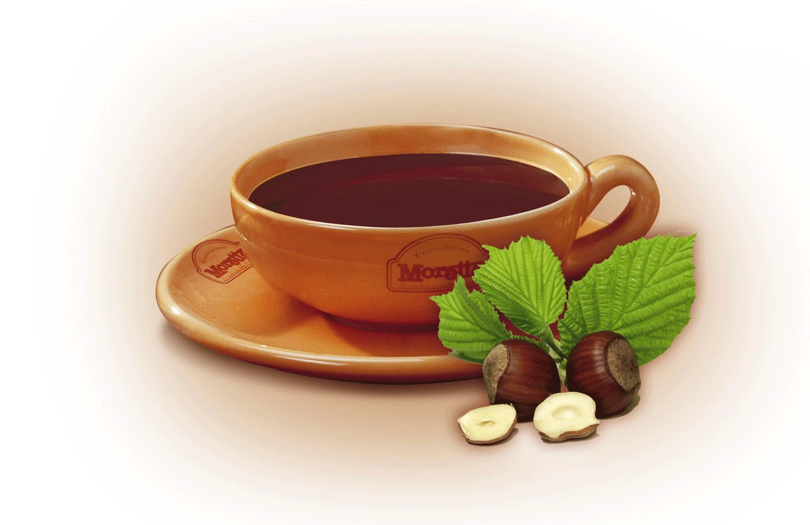 Cukr, rozpustný kakaový prášek 26%, kukuřičný škrob, lískové oříšky (3,5%), aroma, želírovací látka - carragen E407
