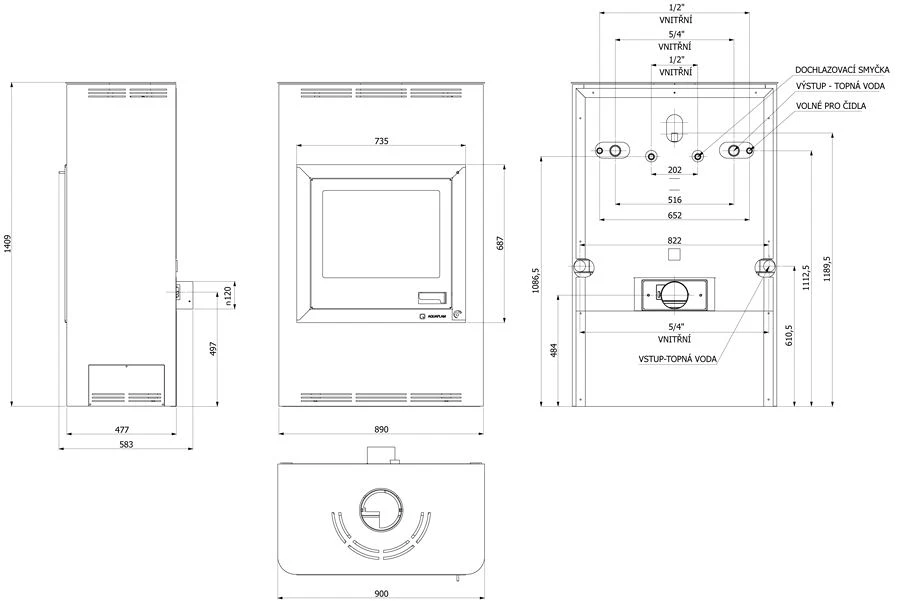 | Typ kamen | teplovodní - dvouplášťová, konvekční |