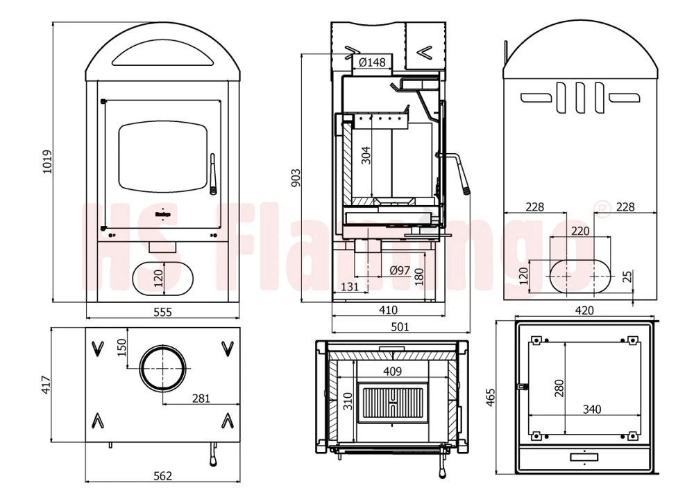 | Rozměr topeniště (Š x V x H) | 405 x 280 x 310 mm |