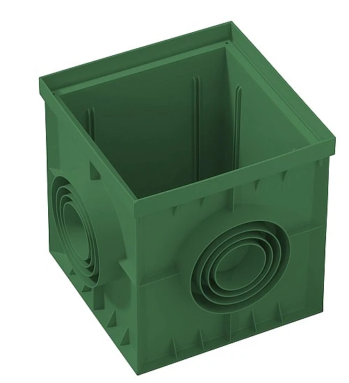 Kanálová šachta v zelené barvě. Oceníte především lehkost - pro snadnou manipulaci a umístění; vysokou odolnost - díky zpevňujícím žebrům po stranách šachty. Odtokové potrubí je snadno napojitelné díky několika předpřipraveným odtokům. Skutečný rozměr 193x193 mm, výška 200 mm. Vyrobeno z polypropylenu. Cena za kus.