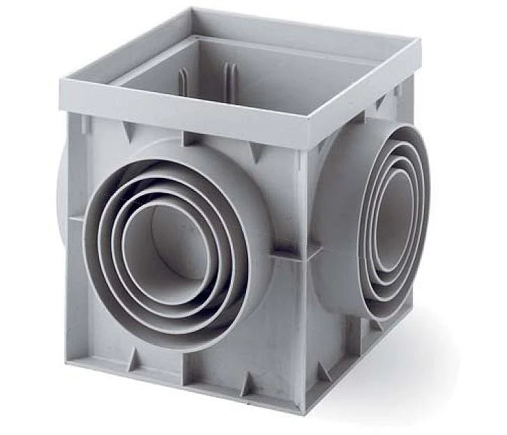 Kanálové šachty jsou přizpůsobeny pro napojení HT a KG odpadního potrubí. Na 3 stranách jsou vytvořeny pro vstup odpadního potrubí (označeno ENTRATA), na zbylé čtvrté straně jsou prstence pro napojení odtokového potrubí (označeno USCITA) Pro snadné napojení odtokového potrubí slouží speciální redukce. Tyto redukce jsou vyrobeny, stejně jako šachty, z polypropylenu a slouží k prodloužení odtokového prstence.
