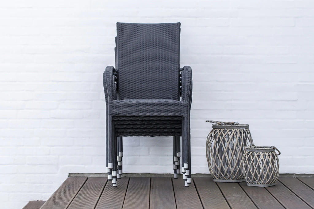 V jednoduchosti je síla! Velmi oblíbená a až překvapivě pohodlná zahradní židle s ocelovou konstrukcí. Elegance, pohodlí a kvalita jsou tři hlavní charakteristické rysy této praktické židle, která se hodí prakticky kamkoliv. Má vyztužeý sedák a proto unese těžší váhy i po delší dobu. Navíc je stohovatelná a Vy jí tak můžete vždy prakticky uskladnit. Díky své pružnosti je umělý ratan nesrovnatelně pohodlnější a navíc je plně bezúdržbový. Je odolný vůči dešti, slunci i mrazu a vy ho tak můžete nechat po celou dobu na zahradě. Snese dlouhodobě maximální zátěž a je proto vhodné do restaurací a kaváren.