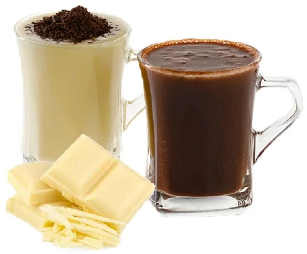 Mléčná náhrada (glukózový sirup, laktóza, rostlinná a mléčná bílkovina, sušené odtučněné mléko, plně ztužený kokosový tuk, částečně ztužený řepkový olej, sušený kukuřičný sirup, stabilizátor: fosforečnany draselné, emulgátory: mono- a diglyceridy mastných kyselin, polysorbát 80, protispékavá látka: oxid křemičitý), cukr, zahušťovadlo (fosforečnan škrobu, xanthan), aroma bílé čokolády a aroma (mléko), jedlá sůl, barvivo (karoteny).