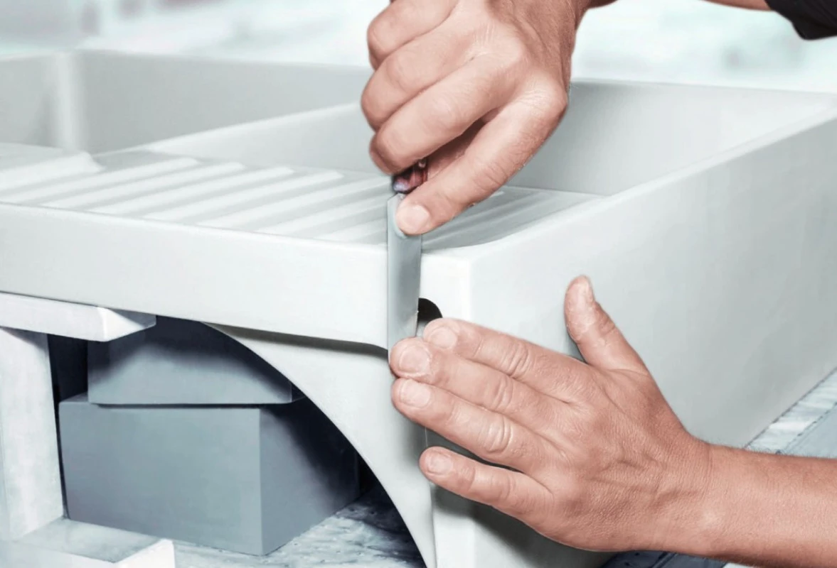 Jemné vlasové prasklinky, které se mohou objevit právě na této spodní, technické části dřezu, vznikají vlivem smršťování materiálu během vypalování. Tento jev je u keramických výrobků tohoto typu běžný a nijak neohrožuje pevnost, vodotěsnost ani celkovou funkčnost dřezu. Tyto mikrotrhliny se navíc vyskytují na neglazované části, která slouží pouze ke konstrukčním účelům (např. připevnění k pracovní desce) a nemají žádný dopad na vzhled ani uživatelský komfort.