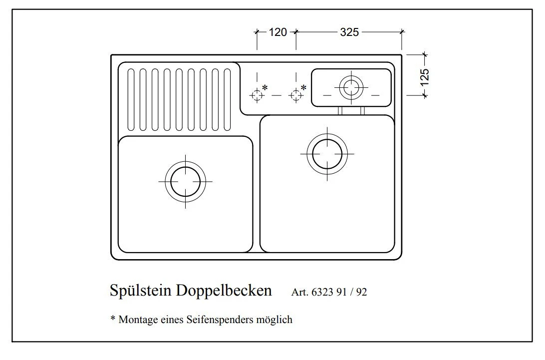 Dřez Double 895.2 nabízí dvě prostorné velké mycí komory, které jsou dostatečně hluboké i pro mytí objemných pečících plechů. V zadní části dřezu je k dispozici malá odkapávací plocha pro menší nádobí a malá vanička s plastovým sítkem např. na houbičku na nádobí případně může sloužit k rozmrazení ovoce nebo zeleniny.