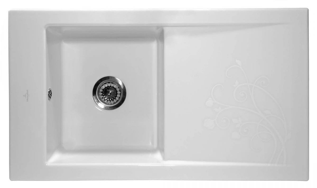 Nadčasový moderní dřez Villeroy & Boch Timeline 900.0E. Luxusní jednodřez s odkapem vyráběný prestižní německou firmou Villeroy & Boch.