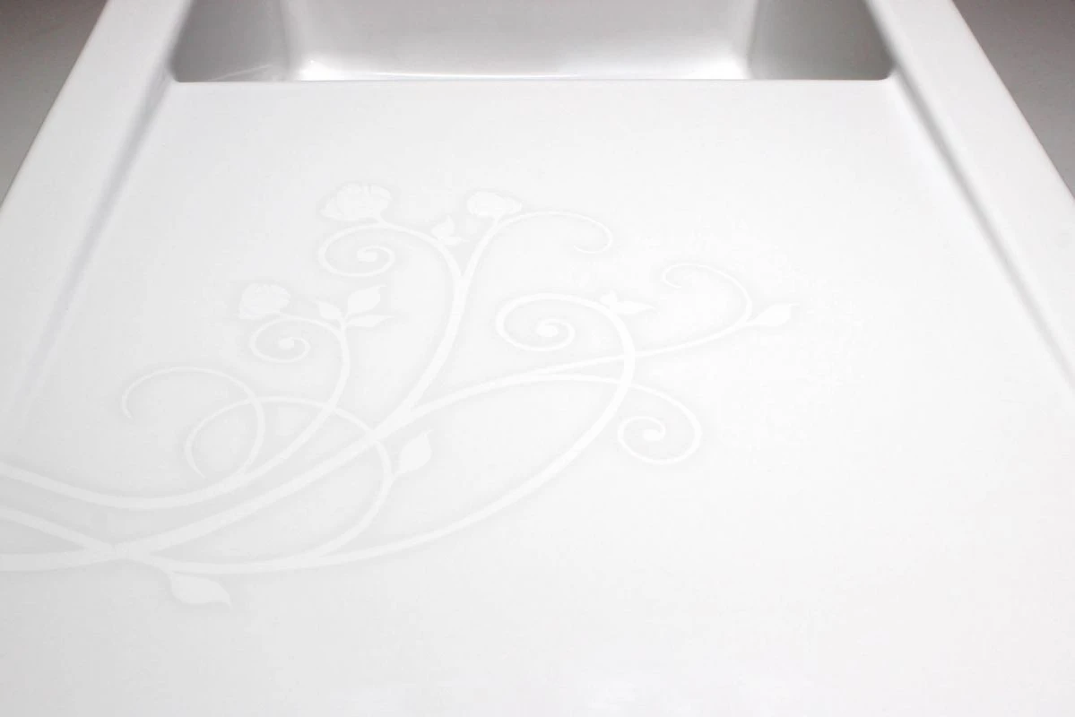 Díky svému jedinečnému designu bude dřez Timeline 900.0E dominantou vaší kuchyně. Skvěle zapadne do rustikálních kuchyní a Provence stylu. Na odkapové části dřezu je v jemných liniích vyobrazen motiv růže LaRose. Máte rádi romantiku a hledáte styl, z něhož čiší útulnost a elegance? Dřez s motivem LaRose skvěle zapadne do tzv. stylu Shabby Chic. Nechte svou kuchyni rozkvést.