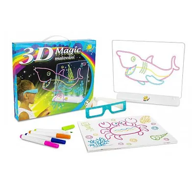 S magickou tabulkou s podsvícením a 3D brýlemi se stane i obyčejné malování opravdovým zážitkem. Pomocí připravených předloh s úžasnými motivy namalujte barevnými fixy na tabulku obrázek a pak už jen stačí rozsvítit světlo, nasadit přiložené brýle a ponořit se do hlubin oceánu, vesmíru nebo jiného kouzelného světa s 3D efektem.