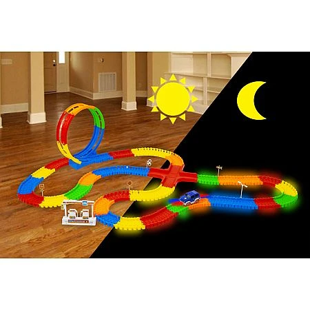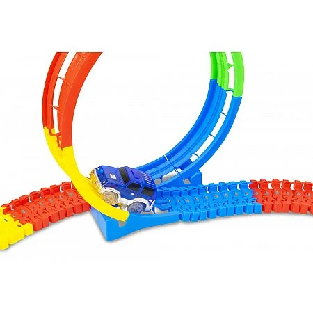 Neonová závodní dráha svítící ve tmě. Flexibilní díly se jednoduše spojí do různých barevných kombinací a umožňují měnit tvar a design dráhy. Svítící autodráha MAXI RACE rozvíjí dětskou kreativitu a představivost, autíčko s LED světly při jízdě vytváří světelné efekty.