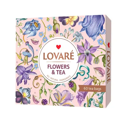 LOVARÉ Portfolio Flowers & Tea Collection je plná oblíbených příchutí porcovaných černých, zelených, ovocných čajů a čaje rooibos v krásném dárkovém balení. Kolekce 12 příchutí po 5 sáčcích vám umožní vyzkoušet více příchutí a najít si tak svou oblíbenou.