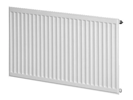 Typ VK 10 - jednodeskový radiátor bez vnitřního konvektoru s integrovaným termostatickým ventilem Heimeier a spodním přípojením.