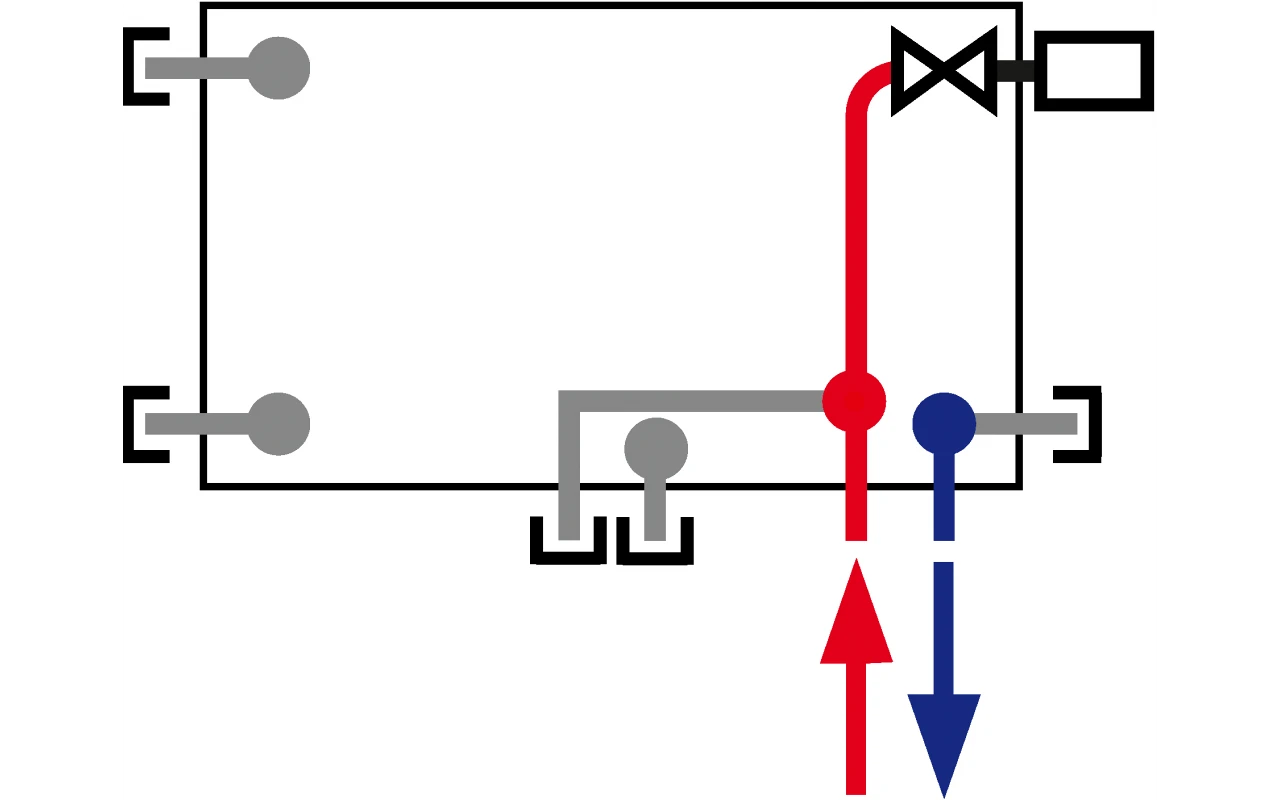 Originální řešení vnitřního rozvodu otopného tělesa RADIK VKM8 dává volnou ruku při výběru způsobu připojení na otopnou soustavu.
