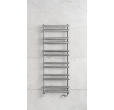 Koupelnový žebřík má důmyslně rozložené příčné trubky, které zcela netradičně přechází skrz svislé boční profily.