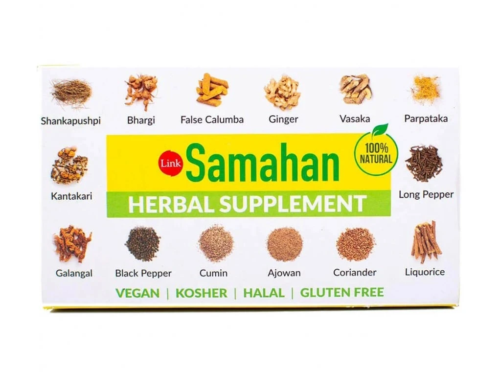Samahan je ájurvédský bylinný čaj, který obsahuje směs 14 různých bylin a koření. Tato prastará čajová receptura, domorodci pojmenovaná jako „Peyava“, se tradičně užívá jako prostředek při nachlazení a podporu obranyschopnosti a vitality organismu. Samahan může pomoci zbavit dýchací cesty zahlenění, rozšířit cévy a tím prohřát celé tělo.