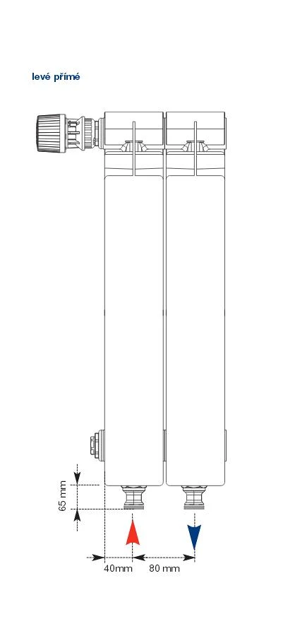 Pro spodní připojení se používá dvoučlánek PLUS, kterým se připojuje radiátor zleva