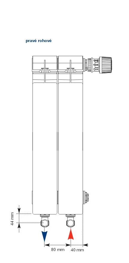 nebo rohovém. Ovládání termostatického ventilu je v horní části ( levé nebo pravé )