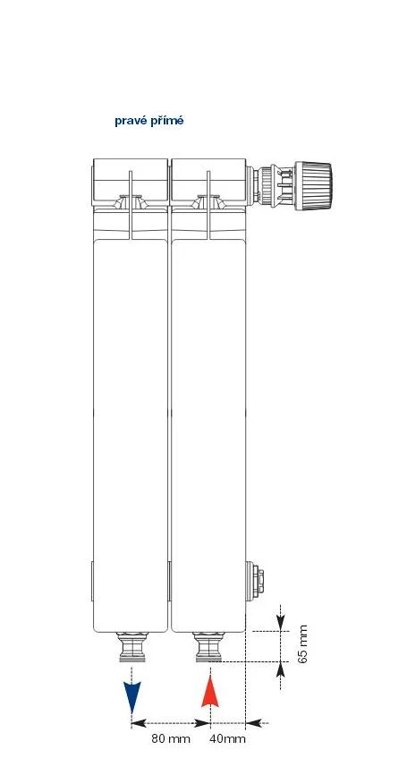 Vstup vody je v krajním článku. Pro objednání je nutné definovat stranu, kde má být