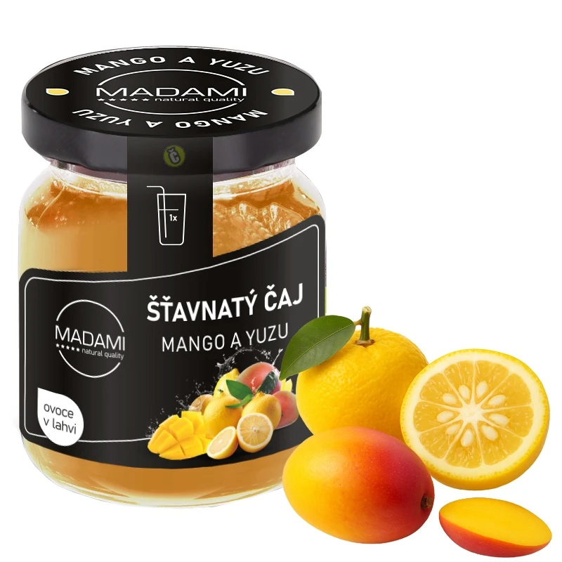 Mango (43%), yuzu (8%), ananas, cukr, pomerančový koncentrát, kyseliny (jablečná, citronová), konzervant sorban draselný, barvivo betakaroten, antioxidanty (ascorban sodný, disiřičitan sodný), sladidlo steviol-glykosid, skořice extrakt, směs koření, aroma