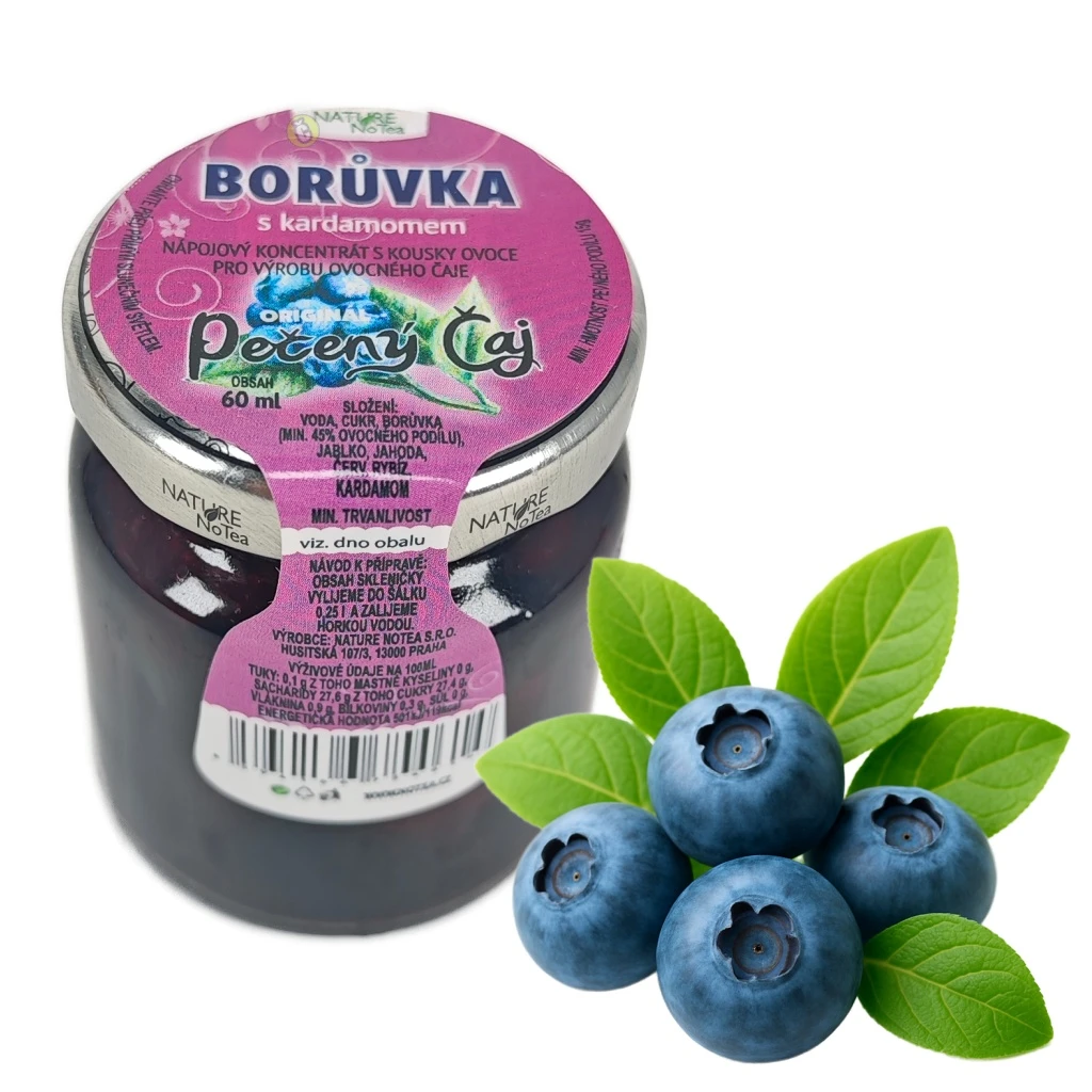 Voda, cukr, borůvka (min. 45% ovocného podílu), jablko, jahoda, červený rybíz, kardamom.