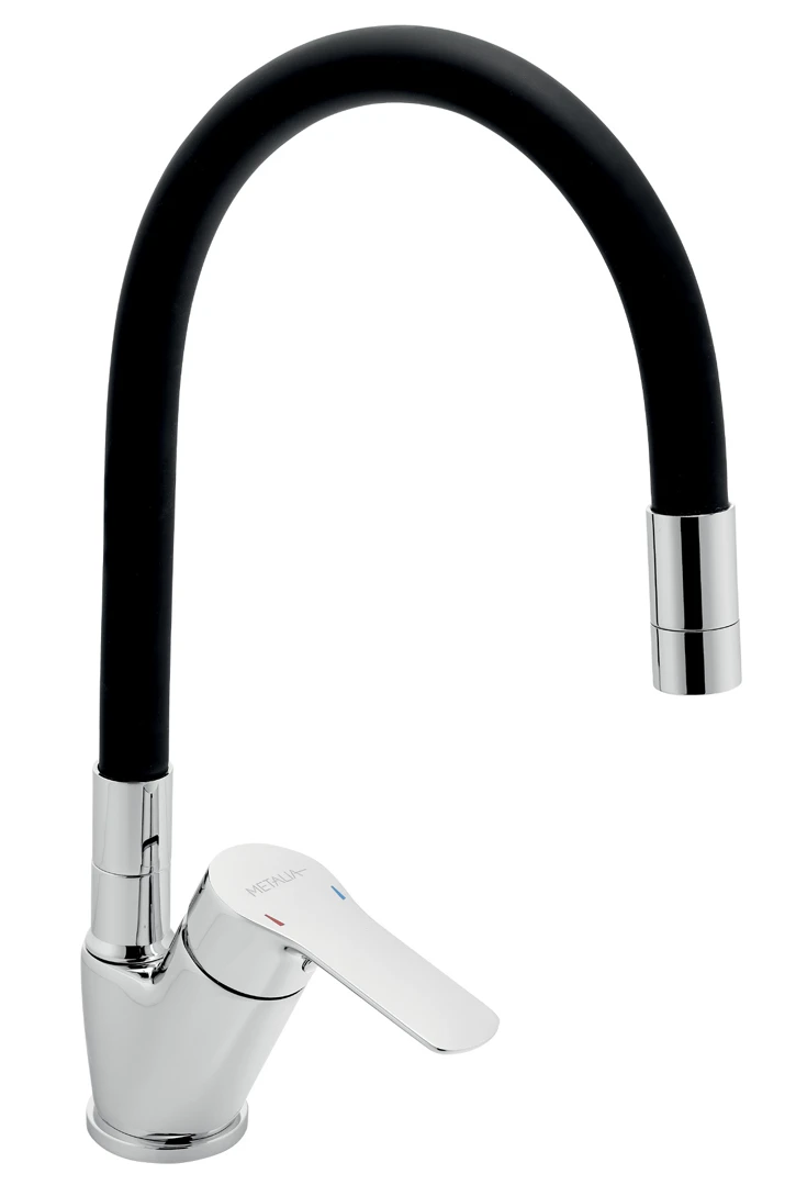 Kvalitní a odolná keramická kartuše KEROX 35 mm s prodlouženou zárukou 7 let. Prvotřídní chromové provedení. Stojánková dřezová baterie s černým otočným FLEXI ramenem. Součástí baterie jsou přívodní hadičky.