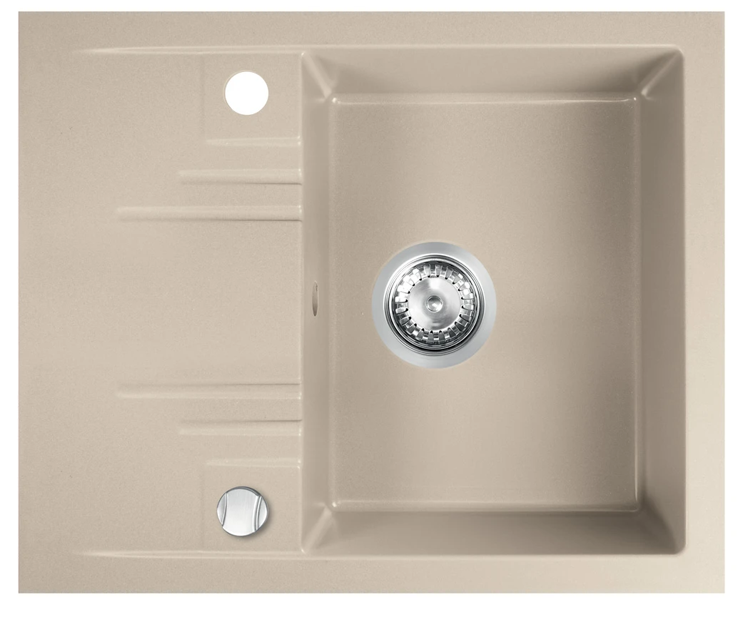 Vnější rozměr 60x80 cm a hloubka 15 cm. Celoplošný pravý kuchyňský dřez s odkapovou plochou bez přep...