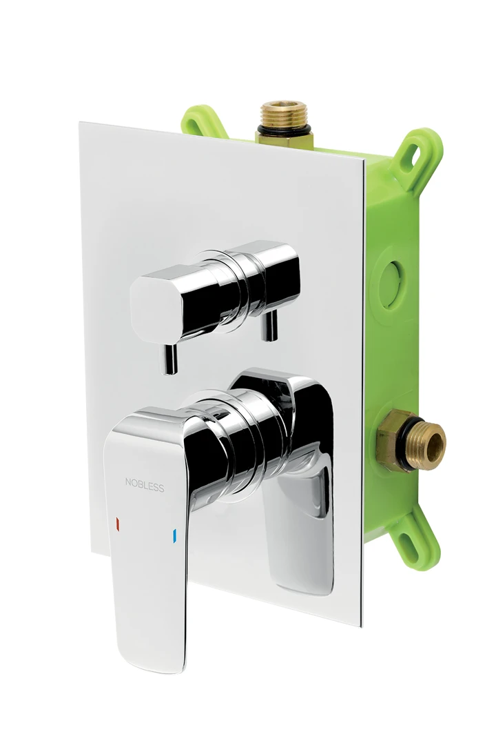 Kvalitní a odolná keramická kartuše 35 mm s prodlouženou zárukou 5 let. Prvotřídní chromové provedení. Vanová a sprchová podomítková baterie s boxem a keramickým přepínačem pro 2 vývody. Box je dodávaný komplet včetně krytu a ovládací páky.