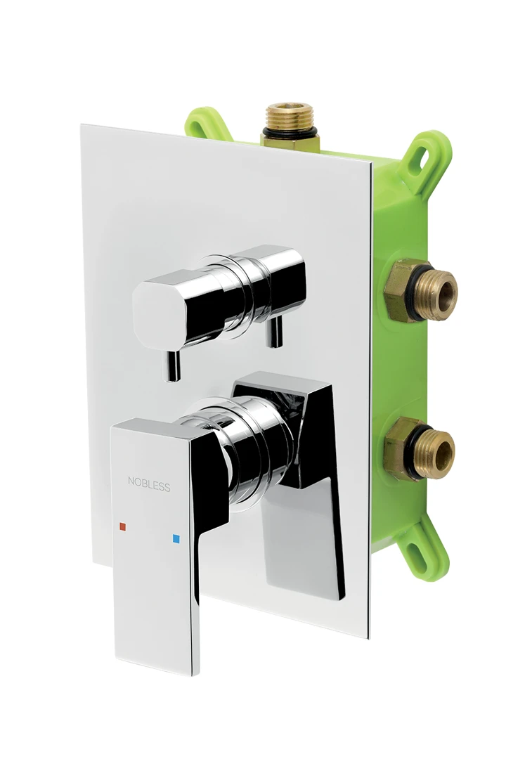 Kvalitní a odolná keramická kartuše 35 mm s prodlouženou zárukou 5 let. Prvotřídní chromové provedení. Vanová a sprchová podomítková baterie s boxem a keramickým přepínačem pro 3 vývody. Box je dodávaný komplet včetně krytu a ovládací páky. Součástí je vodováha pro snadnou a přesnou montáž.