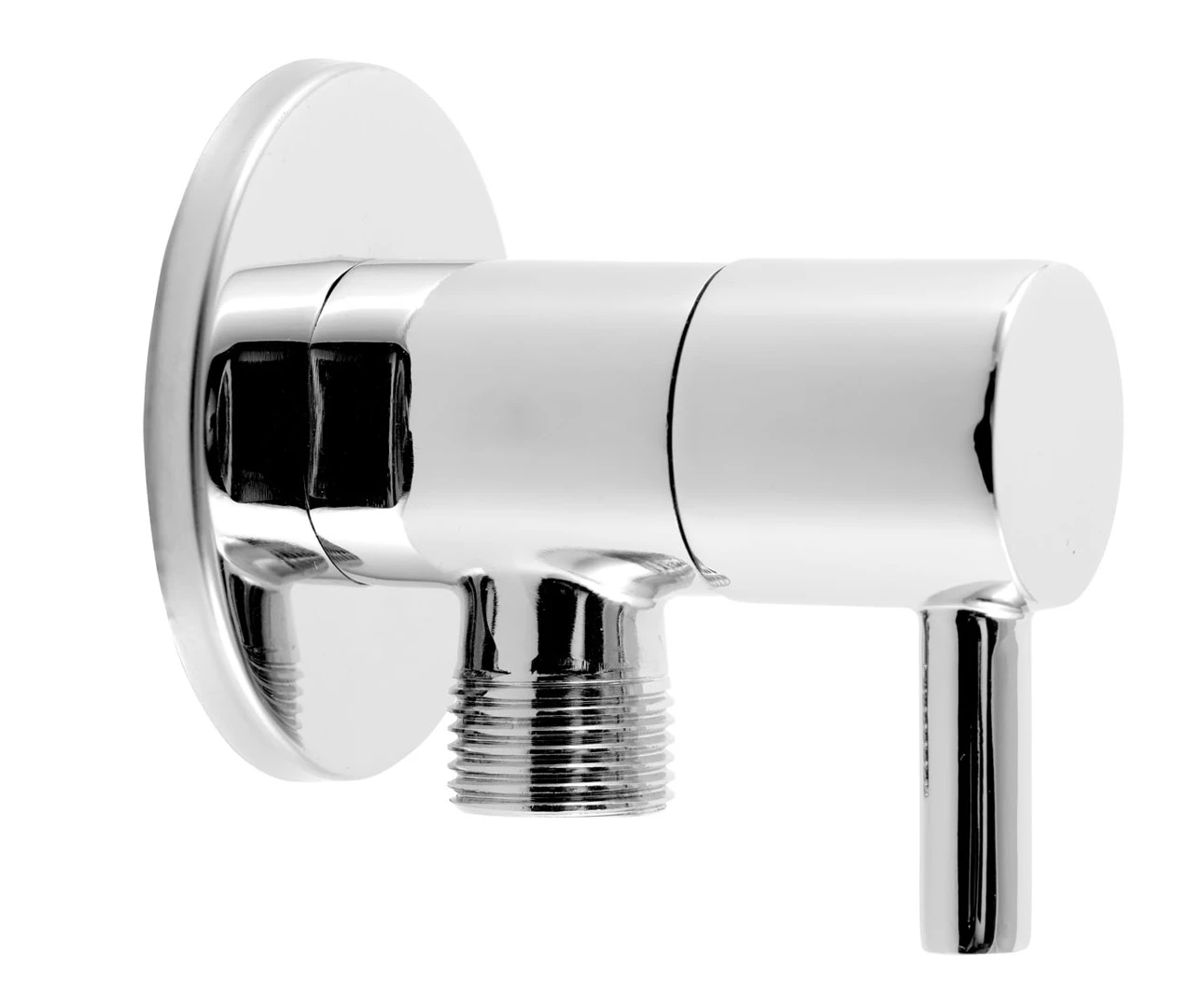 Pračkový rohový ventil se zpětnou klapkou a krytkou.