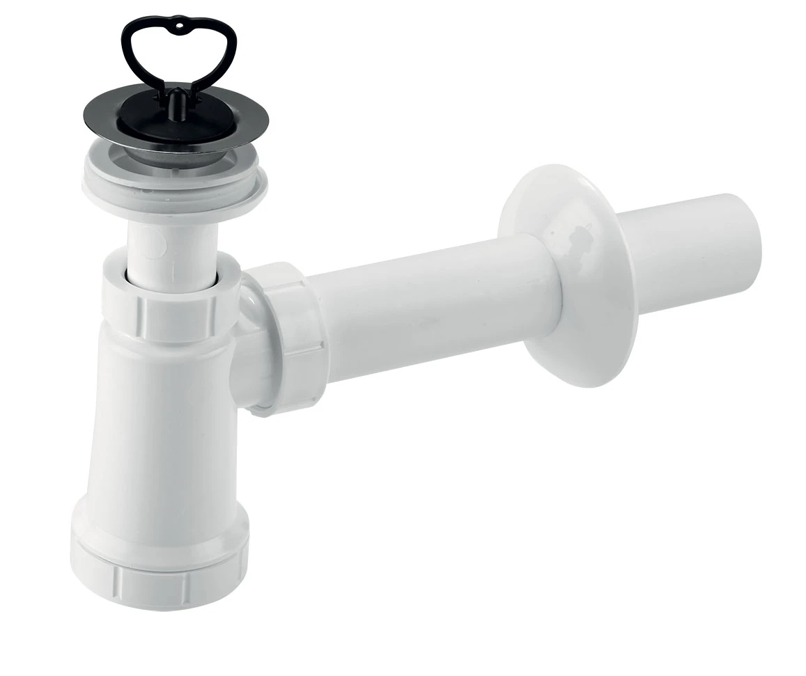 Umyvadlový sifon pro optimální připojení na stěnu a k umyvadlu, s pryžovým těsněním. Součástí je odp...