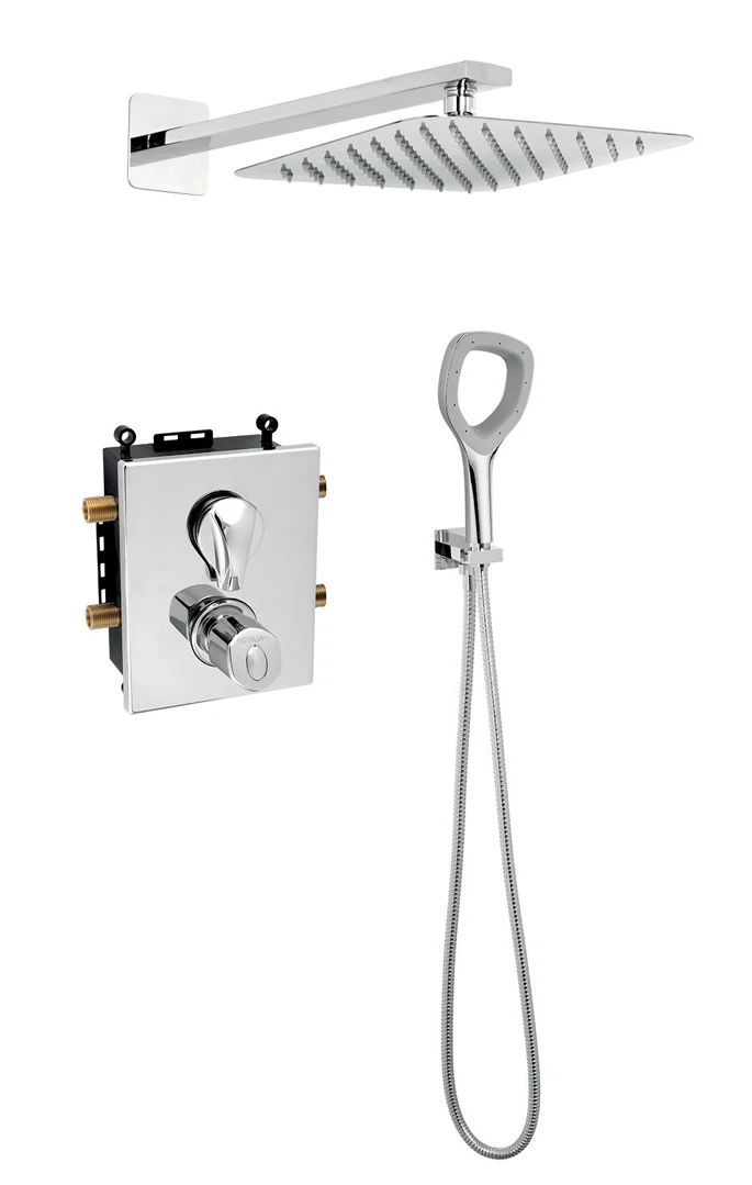 Sprchový set obsahuje baterii se sprchovou soupravou, jednopolohovou ruční a kulatou talířovou sprch...