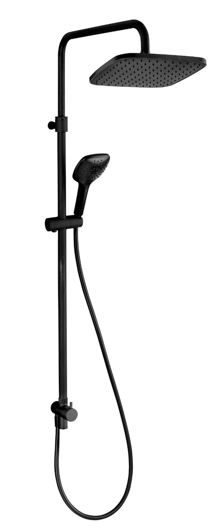 Prvotřídní provedení černá-mat. Součástí balení je kovová sprchová hadice 150 cm, hlavová sprcha 230 x 230 mm, 3-polohová ruční sprcha a posuvný jezdec s držákem ruční sprchy. Set je výškově nastavitelný 1035 - 1225 mm. Umožňuje nastavit i odchýlení vrchního úchytu od stěny v rozmezí 50 - 80 mm. Hlavová sprcha obsahuje šetřící regulátor průtoku vody na max 12 l/min a je vybavena EASY CLEAN tryskami pro snadné čištění.