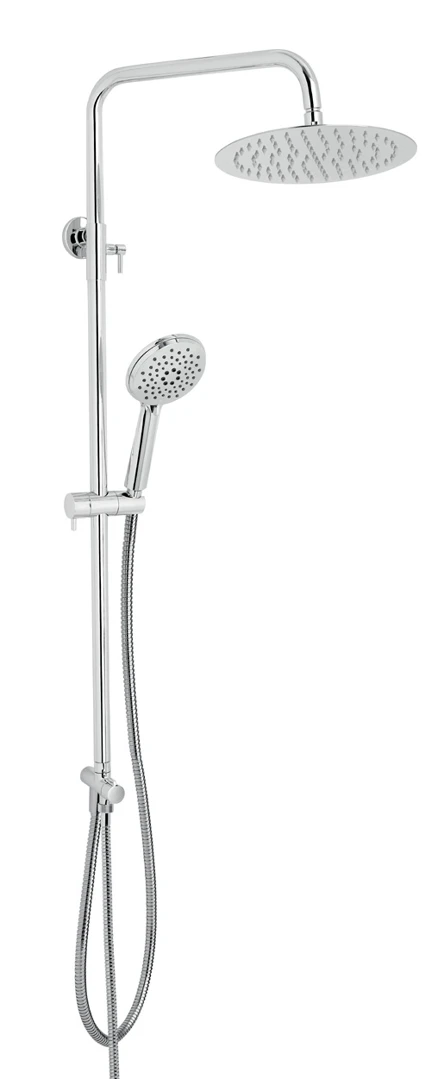 Prvotřídní chromové provedení. Set je vhodný pro připojení k vanové nebo sprchové baterii se spodním vývodem. Součástí balení je hlavová sprcha ve SLIM DESIGN s průměrem 250 mm, kovová hadice 150 cm a 3-polohová ruční sprcha. Nastavitelná výška setu je 890 - 1300 mm. Součástí balení je připojovací hadička v délce 70 cm.
