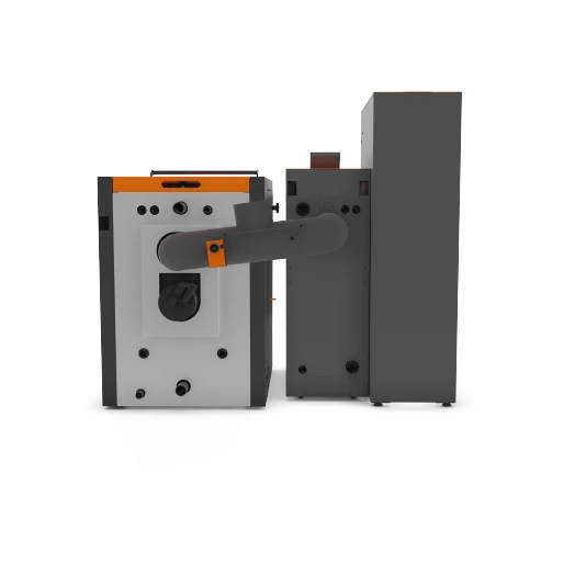 Jedná se o set kotlů HEKO-D a Biopel mini V9 . Ovšem stačí vám pouze jeden komín a když dřevo dohoří, je kotel schopný sám přejít na topení peletami.