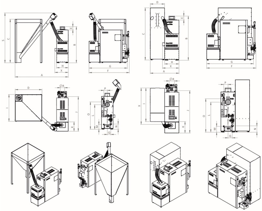 | S - celková výška kotle včetně podavače (flexibilní rozměr) | (mm) | 1500 | ||||