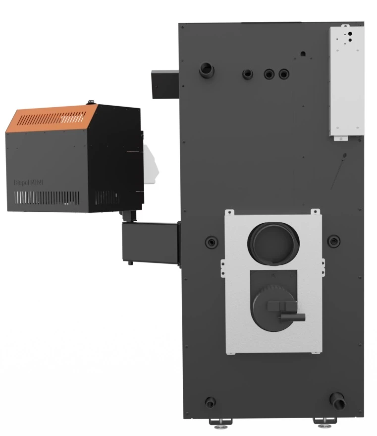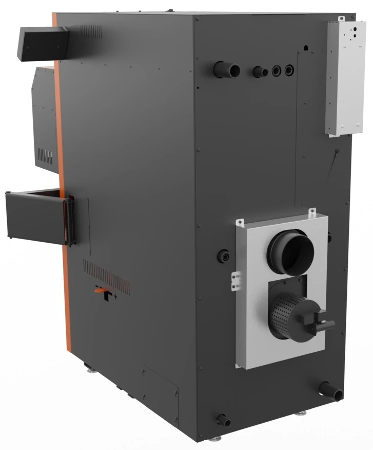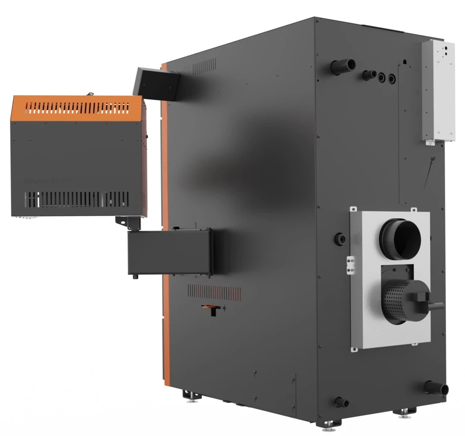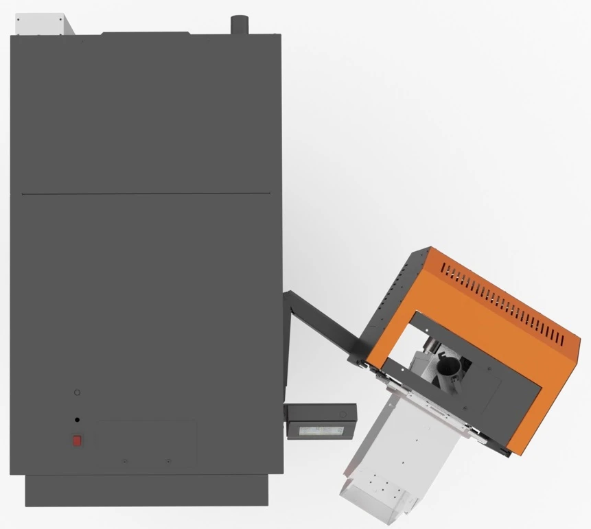 Cena včetně hořáku, podavač 2,5 m, násypky 80x80 na 220 kg pelet, ramene na vytahování hořáku, řídící jednotky kombi, ucpávky dvířek.
