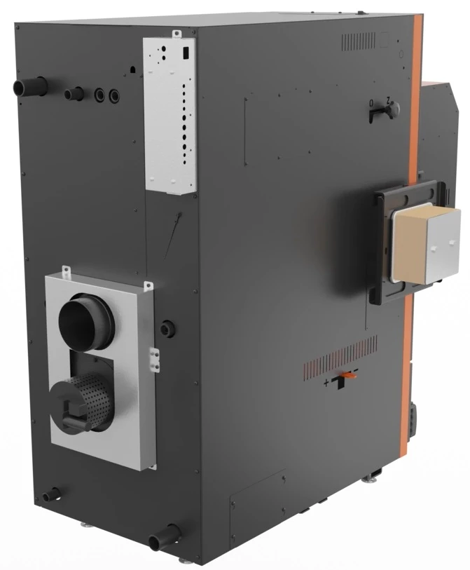 Cena včetně hořáku, podavač 2,5 m, násypky 80x80 na 220 kg pelet, ramene na vytahování hořáku, řídící jednotky kombi, ucpávky dvířek.