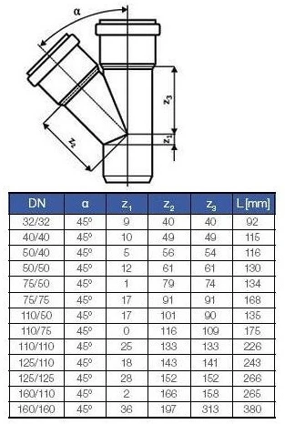 | Rozměr kanalizačních tvarovek | DN 50 - 50 mm, DN110 - 110 mm |