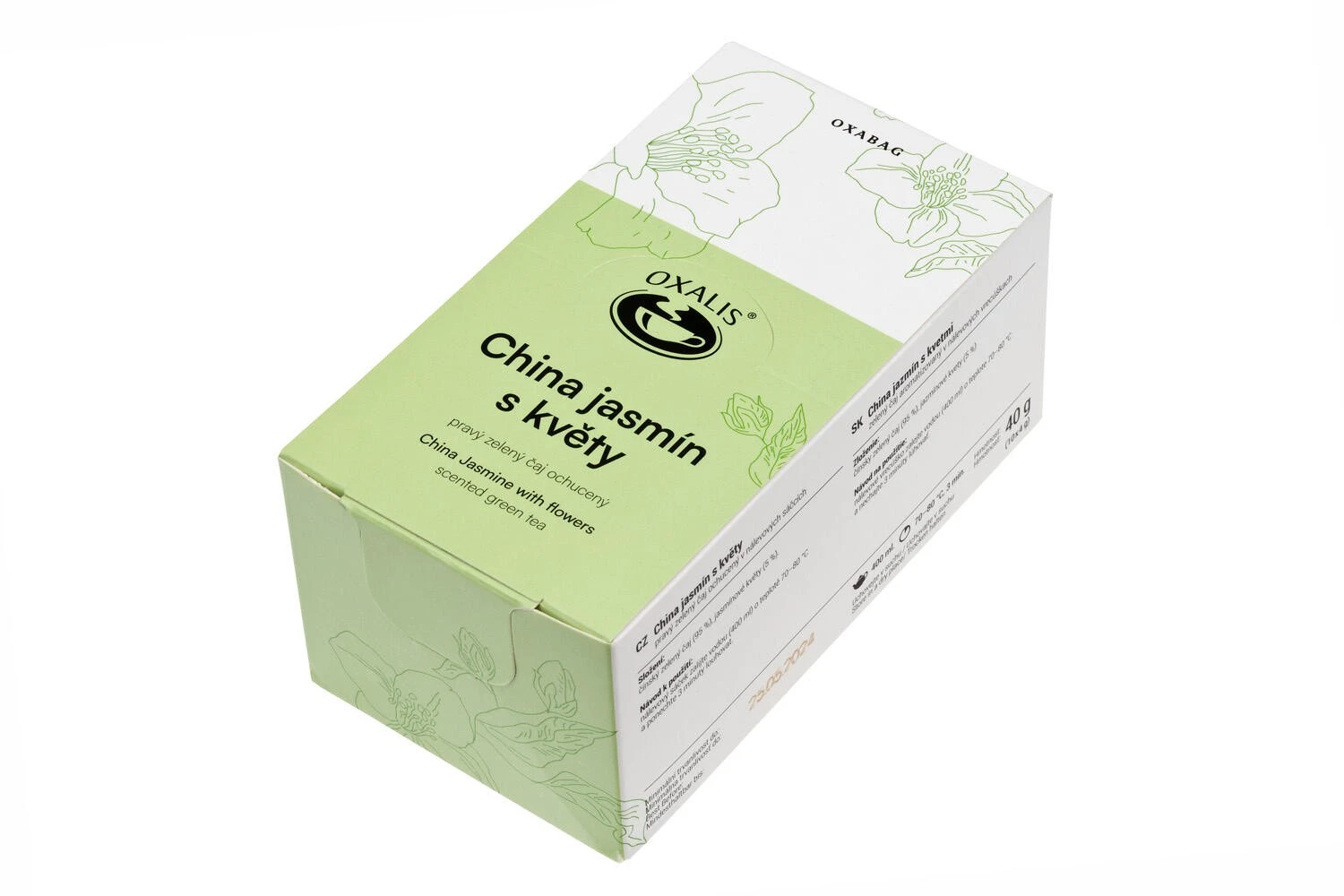 Čínská zelený čaj (95%), jasmínové květy (5%).